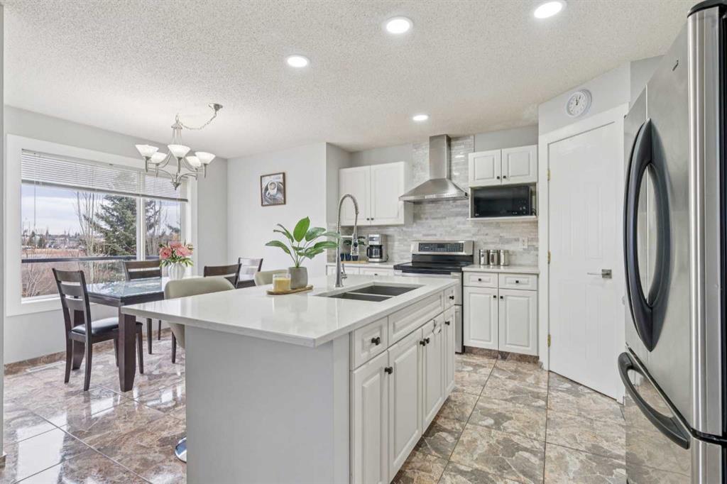 OPEN HOUSE on Sunday, Nov 23 between 2:00-4:30pm -This spacious renovated 5-bedroom two-storey WALK-OUT BASEMENT, tucked into a quiet spot in the desirable community of Bridlewood, offers the ideal blend of space, flexibility, and a fantastic pie lot. Attractive exterior stone accents, along with new siding and shingles completed in 2023, enhance the home’s curb appeal. From the moment you step inside, the impressive high ceilings in the front entrance and the abundance of natural light create a bright, welcoming first impression that carries throughout the home—perfect for a growing family or anyone needing extra room to live. The main floor is designed with both everyday living and entertaining in mind. A formal living room and dining room provide comfortable spaces for gatherings, while the sunny breakfast nook and well-appointed kitchen make day-to-day life easy. The kitchen features upgraded quartz countertops and stainless steel appliances, along with plenty of cabinet and counter space. Just off the kitchen, the cozy family room with a gas fireplace invites you to unwind. The convenient main-floor laundry room is a great size and features a window—making it versatile enough to use as a small office, hobby space, or additional storage. A 2-piece bathroom completes this level. This home is also equipped with air conditioning and NO POLY-B in the home. Upstairs, you’ll find four bedrooms on the upper level—a rare and valuable feature that provides exceptional comfort and flexibility for families. The oversized primary bedroom offers beautiful views of the pond and includes a spacious walk-in closet along with a 4-piece ensuite. An additional well-appointed 4-piece bathroom serves the remaining bedrooms. The fully developed walkout basement adds even more versatility. It features a large bedroom, a 4-piece bathroom, and a second laundry area with washer and dryer—an excellent setup for extended family, guests, or older children. The wet bar, complete with a full-size sink and refrigerator, and the spacious family room provide additional functional living space. With its thoughtful layout, this walkout level also offers great potential if you choose to explore a future basement suite (subject to city approvals). Outside, the home is set on a desirable pie-shaped lot, offering a much larger backyard than a typical lot. The beautifully finished concrete pad and completed steps provide a clean, functional outdoor extension of the walkout level, while the dedicated garden space adds extra charm for those who enjoy gardening. A brand new composite deck with upgraded railings provides a fantastic outdoor space to relax, entertain, or enjoy views of the surrounding area. With plenty of room for kids to play or for creating your ideal outdoor living area, this yard truly stands out. If you’ve been searching for a bright, spacious, renovated walkout home on a big pie lot with pond views in Bridlewood, this property is a must-see. Call today to book your private viewing!