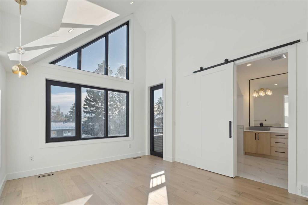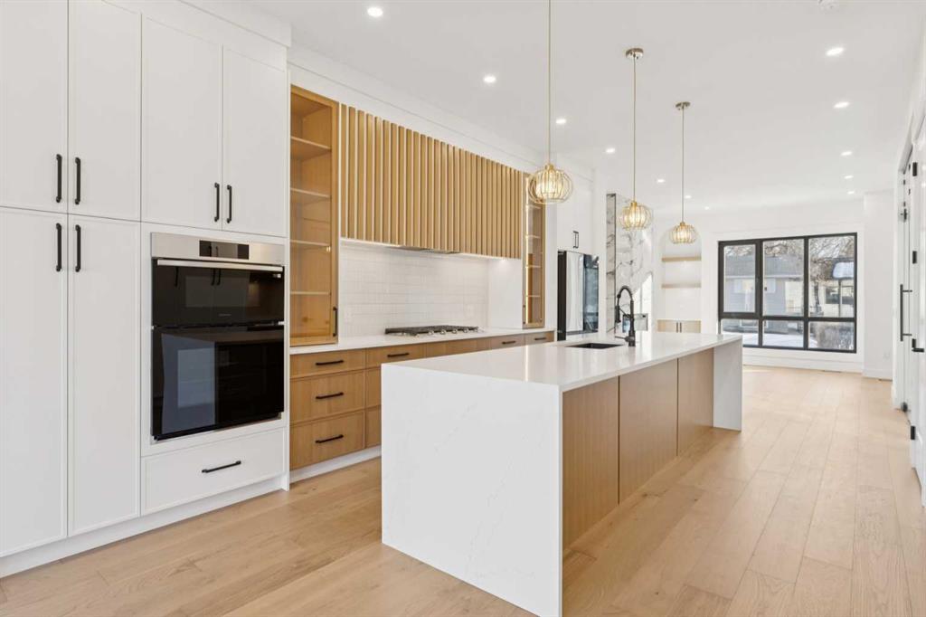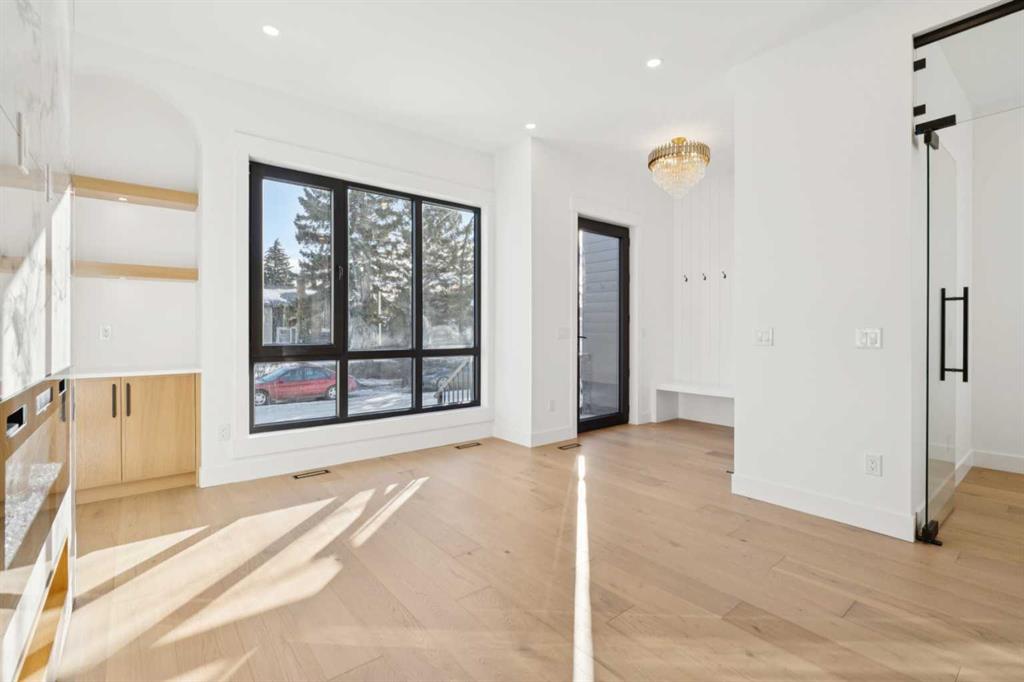 Stunning Semi-Detached Infill with Legal Suite in Bonavista. BRAND NEW, custom-built semi-detached infill in the desirable community of Bonavista offers the perfect blend of luxury living and practicality. With over 3180 sqft. of elegant living space including an extended 3-bedroom legal basement suite, this home provides the flexibility of multi-generational living or a fantastic mortgage helper. The main level is designed for both style and function, featuring 10-ft ceilings, a bright open-concept layout, and oversized windows that fill the space with natural light. The kitchen is well appointed, with ceiling-height cabinetry, a massive island with waterfall quartz counters, and premium stainless steel appliances. The living room is bright and welcoming, with modern finishes and built-in cabinetry that offers plenty of functional storage. Dining room with double sliding doors overlooking the spacious backyard. Upstairs, you’ll find a spacious primary retreat with soaring 16ft vaulted ceilings, walk-in closet with built-ins, and a spa-inspired ensuite featuring heated floors, freestanding soaker tub, and a fully tiled glass shower with steam. Two additional bedrooms with 10ft tray ceiling, a 4-piece main bath, and an upper laundry room add everyday convenience. The professionally developed legal suite has its own private side entrance and offers over 1121 sqft. of developed living space. Highlights include 3 large bedrooms, 2 full bathrooms, in-suite laundry, a generous living/dining area, and a full kitchen with quartz counters, ceiling-height cabinets, and stainless-steel appliances. Comfort is maximized with in-floor heating (roughed in) and 4” rigid insulation beneath the slab for year-round warmth. Set on a generous 128-ft deep lot, this home offers plenty of outdoor space with a finished concrete patio, and a paved back alley. Bonavista is one of Calgary’s most established and desirable neighbourhoods—renowned for its safety, quiet streets, excellent schools, and close proximity to shopping, restaurants, parks, and transit. This is a rare opportunity to own a thoughtfully designed infill in one of Calgary’s most coveted areas—complete with a full legal suite that adds value and flexibility. Book your private showing today and experience everything this incredible home has to offer.